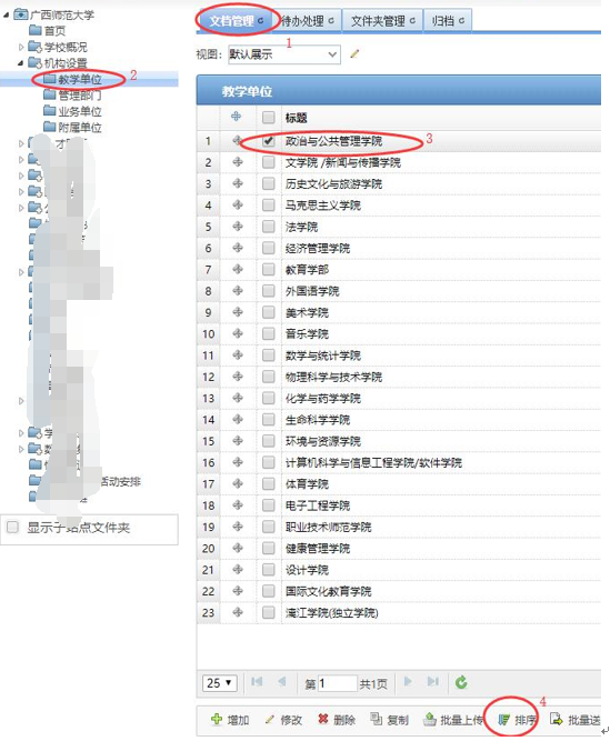一、按下图设置文件夹(栏目)排序方式为