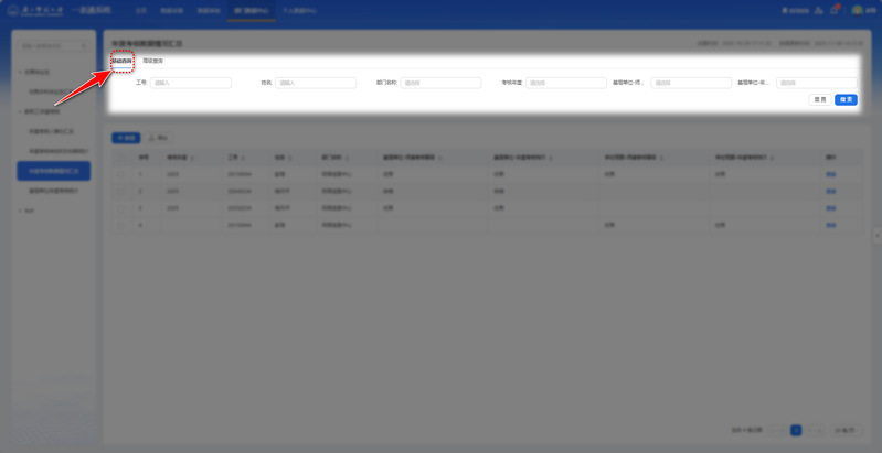 3、在基础查询区域,用户可以根据特定字段对数据进行筛选,例如按照姓名、工号或部门名称等条件进行查询,以便快速定位所需信息。