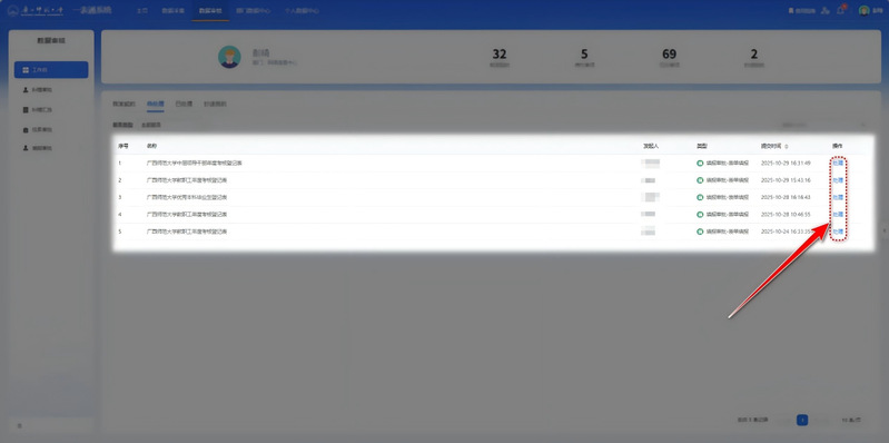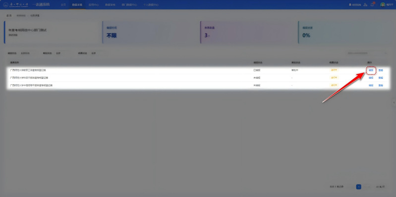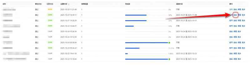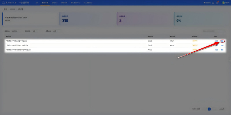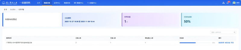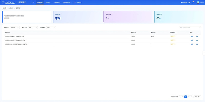 2、在目标填报任务的右侧操作栏,点击“查看”按钮,系统将展示该任务的总体统计信息,包括已提交表格的数量、填报进度等。