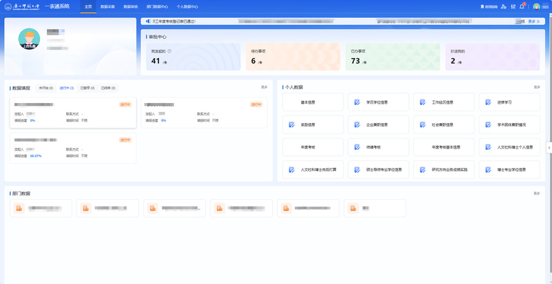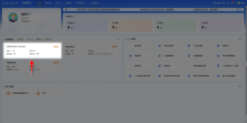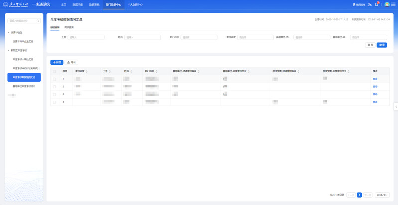 1、登录“一表通”系统后,点击“部门数据中心”模块,进入部门数据列表页面。