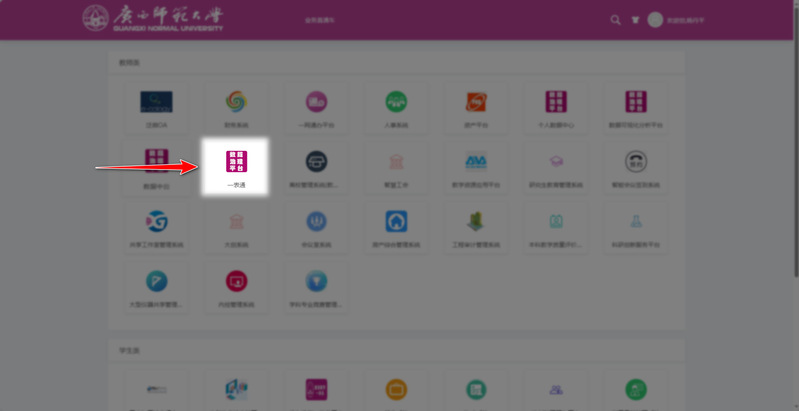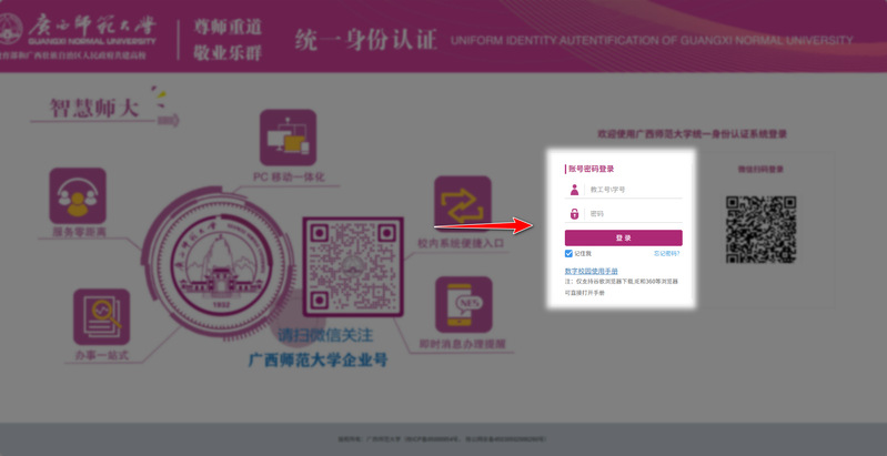 在浏览器地址栏中输入https://one.gxnu.edu.cn,使用统一身份认证账号登录。