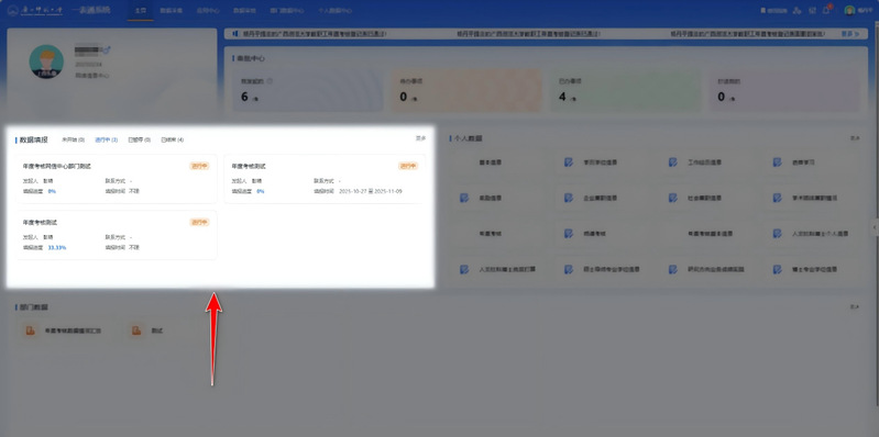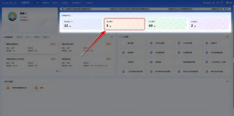 1、登录“一表通”系统后,在主页中找到“审批中心”模块。待办事项栏中显示的数字表示当前待审批任务的数量,便于审批人及时了解需处理的表格。