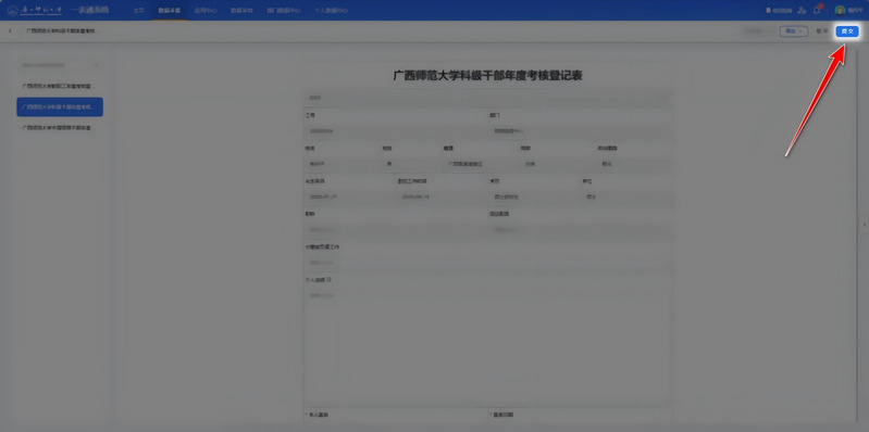 6、在确认表格内容已填写完整且无误后,请点击页面右上角的“提交”按钮,将表格提交至审核阶段。