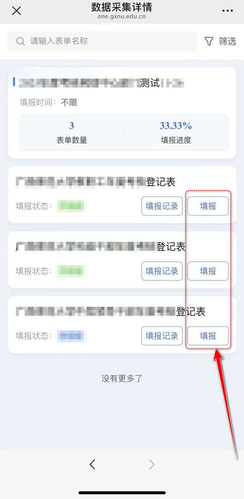 1、当需要终止填报任务时,可以在“数据采集”页面中,找到并点击该任务右侧的“更多”按钮。