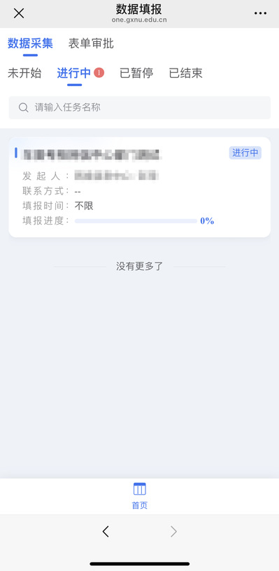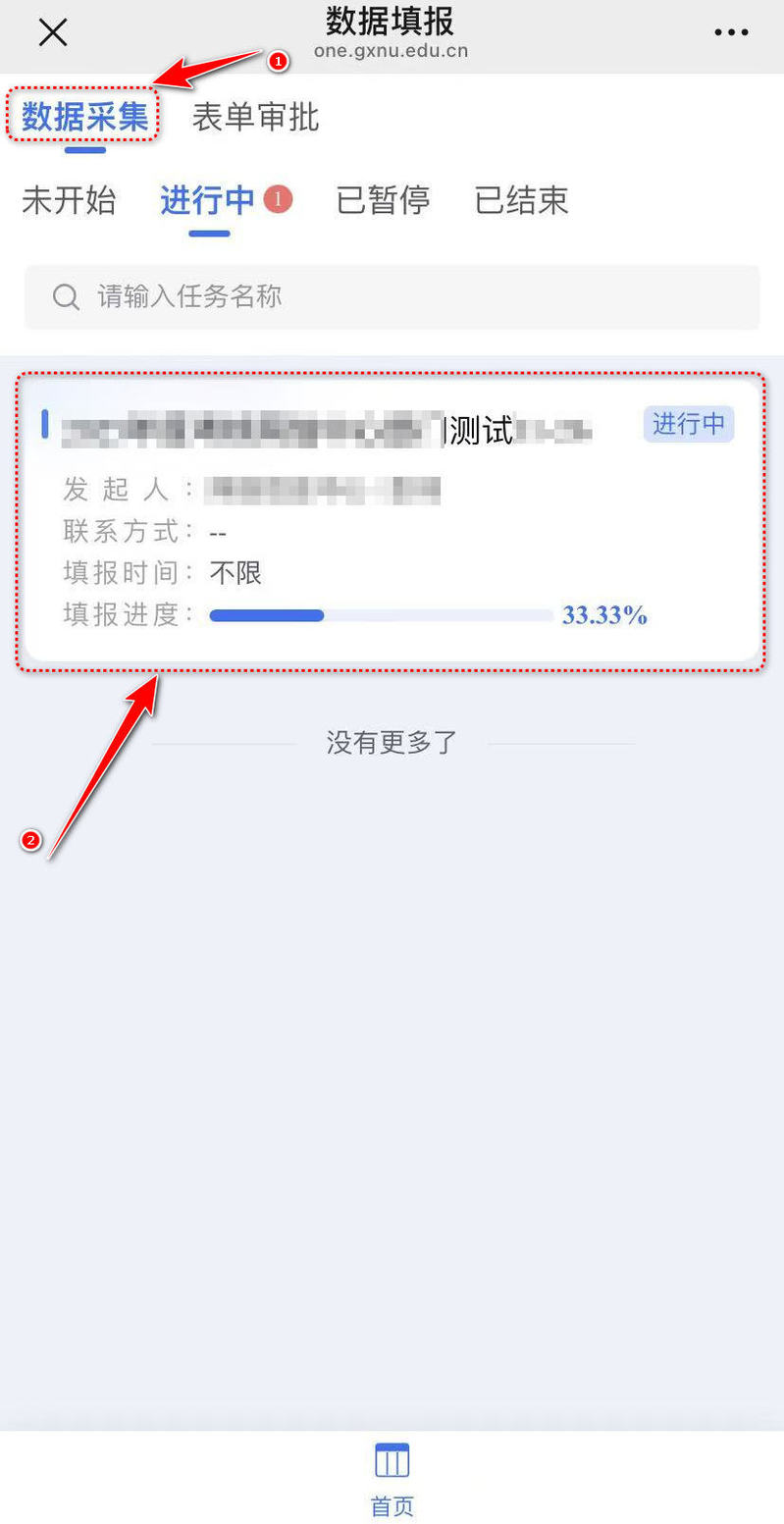 1、进入一表通系统移动端首页,在“数据采集”栏目下找到并点击需要填写的任务。