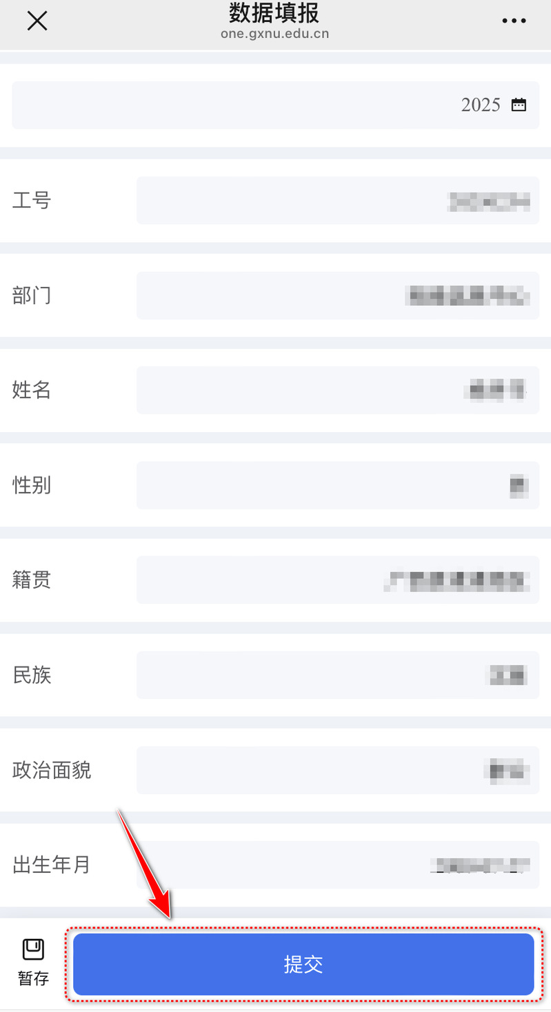 在填写表格内容时,如果需要暂时离开,为避免因长时间未操作而丢失已填写的内容,请点击页面右上角的“暂存”按钮,以保存当前的填写内容。